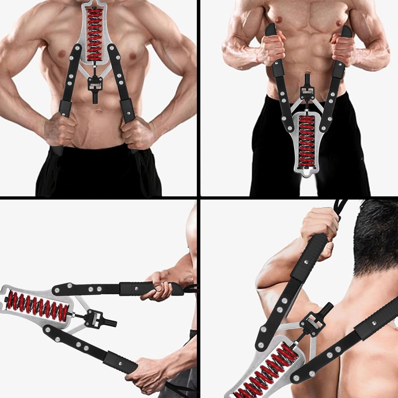 أمسك الجهاز بالمقبضين وابدأ بالضغط لتقوية عضلات الجزء العلوي